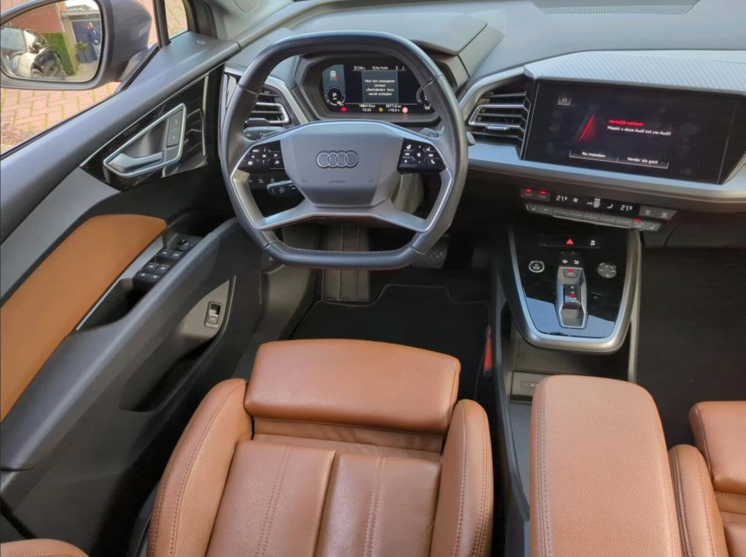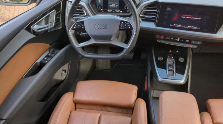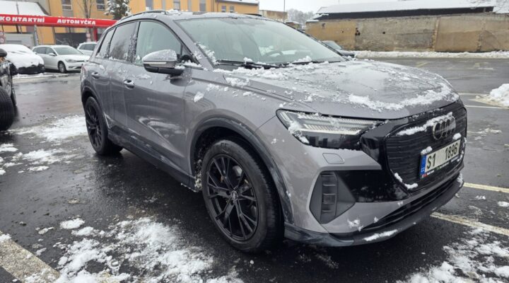 Nabízím k prodeji prémiové elektrické SUV Audi Q4 E-tron ve verzi 40 s největší 77kWh baterií. Tento vůz kombinuje elegantní šedou metalízu s černými doplňky a naprosto výjimečným interiérem v prémiové hnědé kůži. Díky bohaté výbavě Advanced a tažnému zařízení jde o ideální rodinné auto pro dlouhé trasy i každodenní komfort.