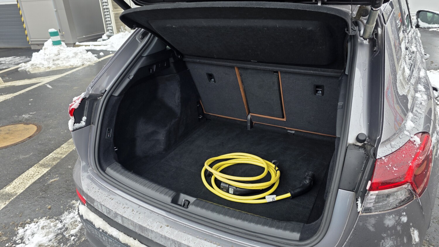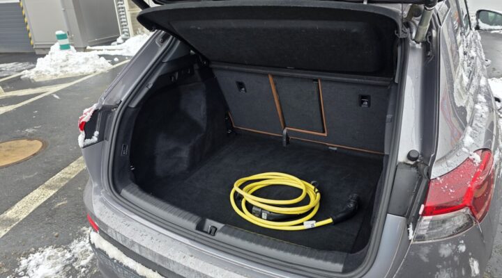 Tažné zařízení: Vůz je vybaven tažným hákem (kapacita 1000 kg), což u elektromobilů této třídy není samozřejmostí.